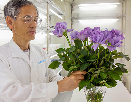 田中和他领导培育的“蓝玫瑰”。图片来源:Science News [1]