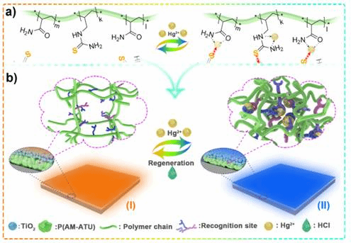 图1光子晶体薄膜可逆吸附、检测汞离子示意图
