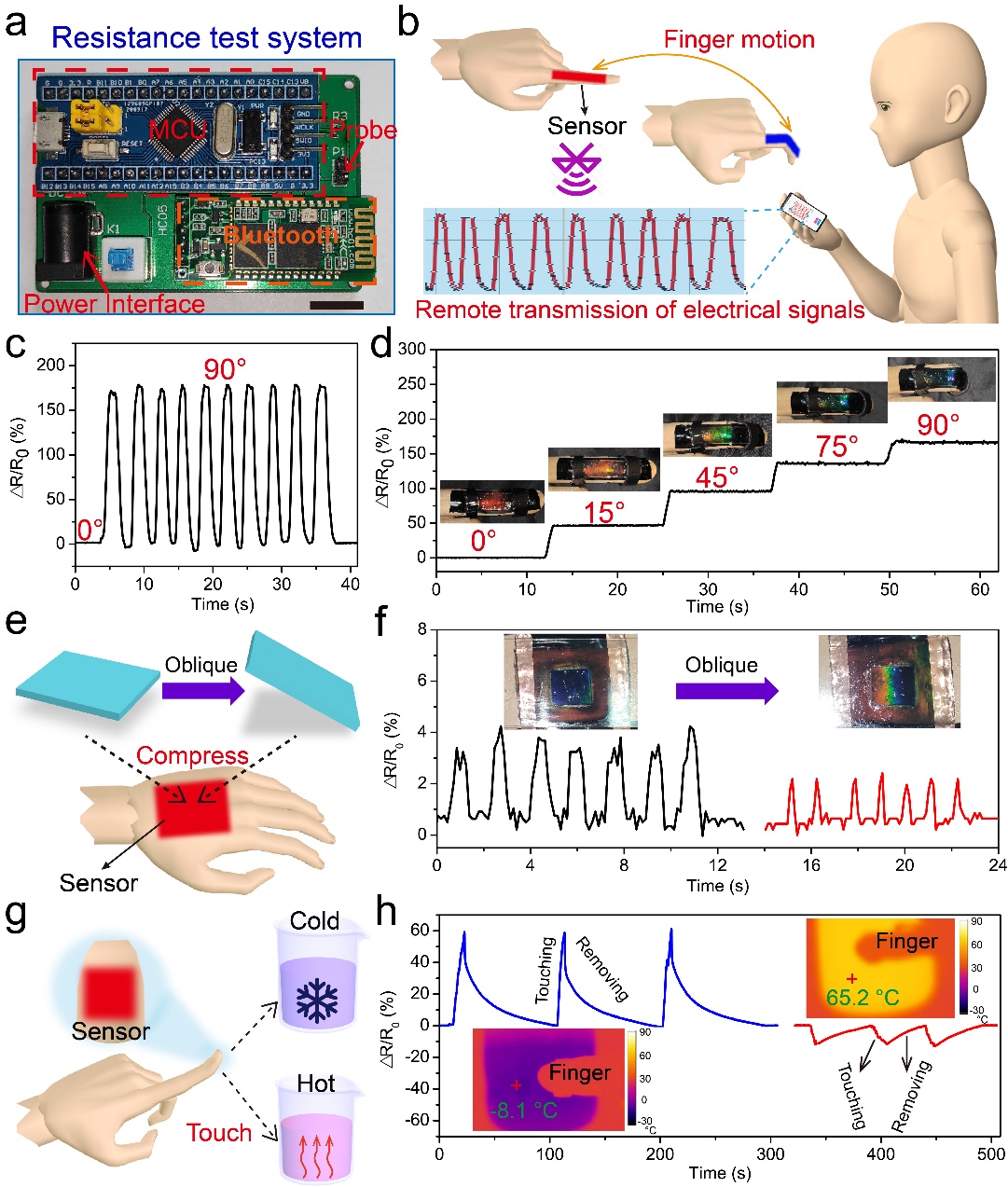图7具有无线传感能力的光子-离子皮肤对刺激的双信号感知