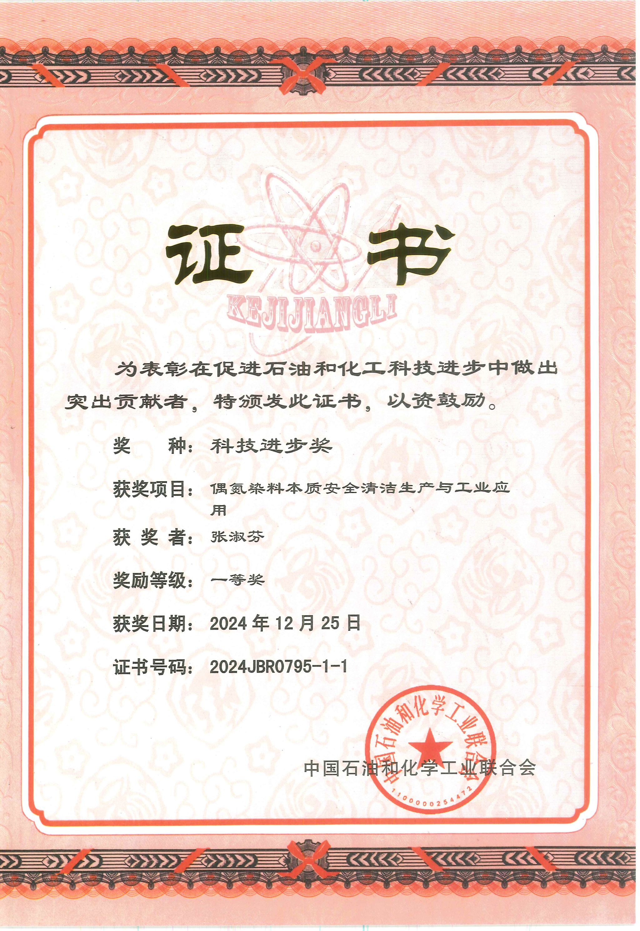 张淑芬教授团队继2016年“基团功能强化的新型反应性染料创制与应用”项目获得国家技术发明二等奖,2015年“新反应型染料的创制与工业应用”项目获得中国石油和化学工业联合会技术发明一等奖,2018年“低聚合度多羧酸染料的创制与工业化应用”项目获得了中国石油和化学工业联合会技术发明一等奖之后,2024年该团队再次获得中国石油和化学工业联合会科技进步一等奖。
